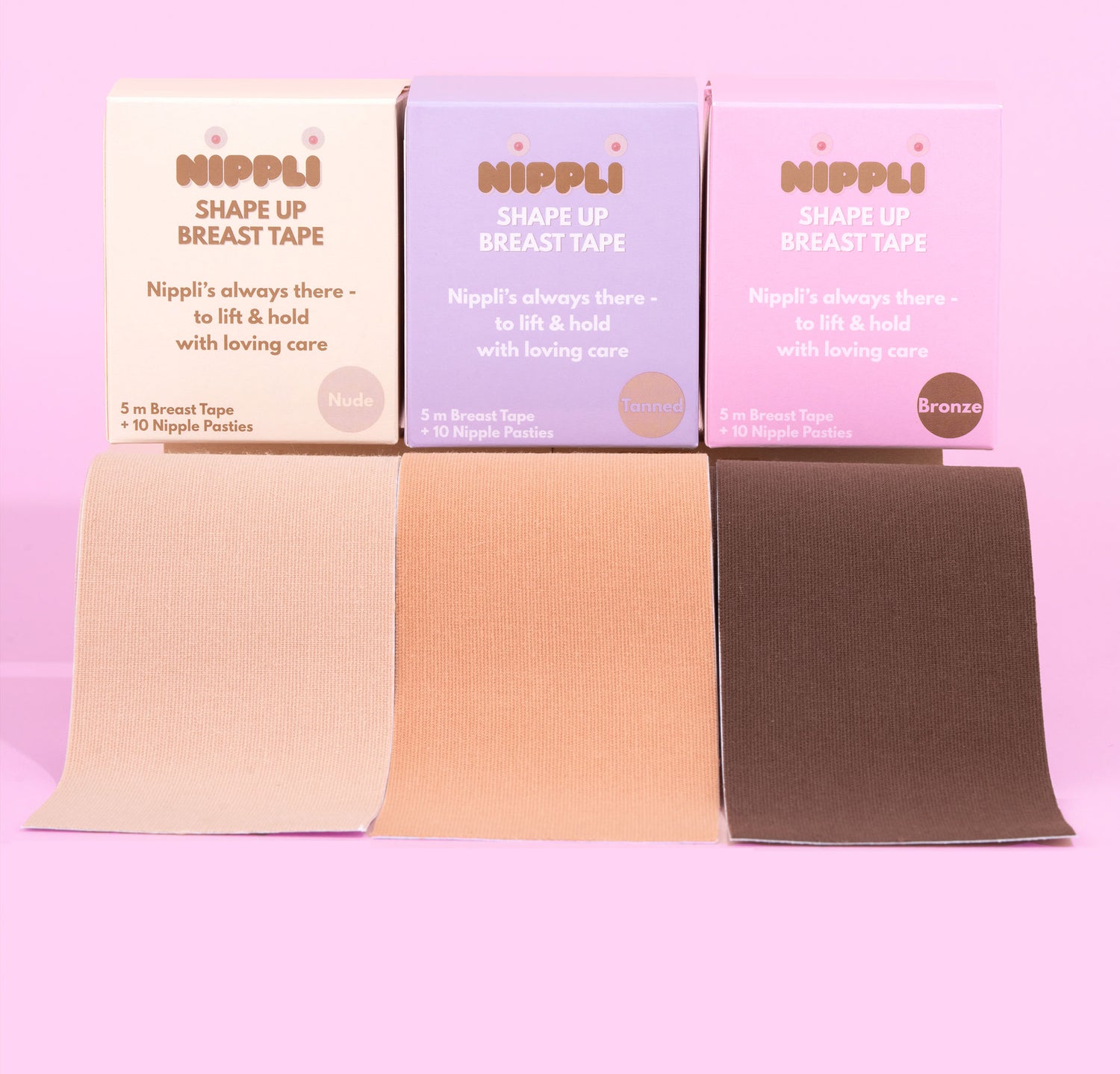 Nel negozio online di Nippli trovi anche i nastri modellanti per il seno "Shape Up Breast Tapes" di Nippli, che offrono un comfort particolarmente elevato grazie alla larghezza di 7,5 cm.